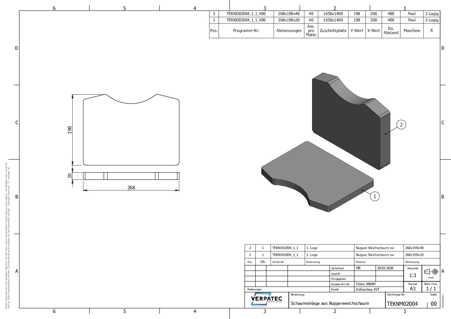 Noppenweichschaum einlage passend zu Tekno 2004M.